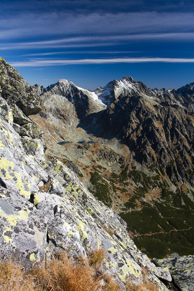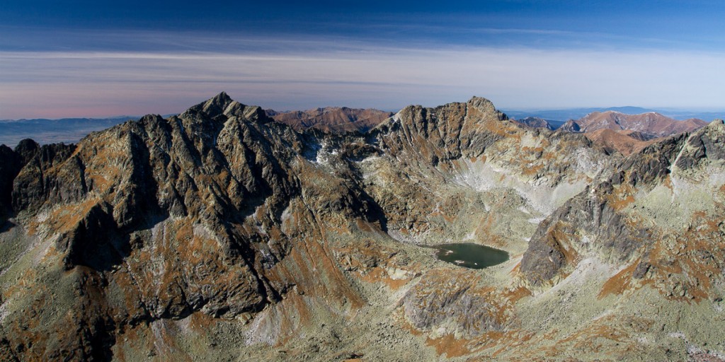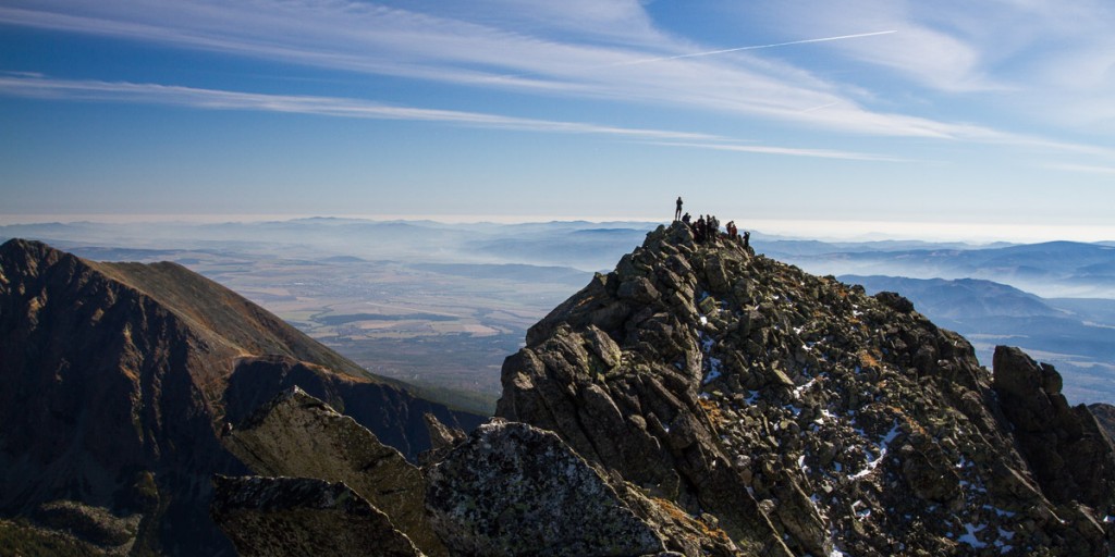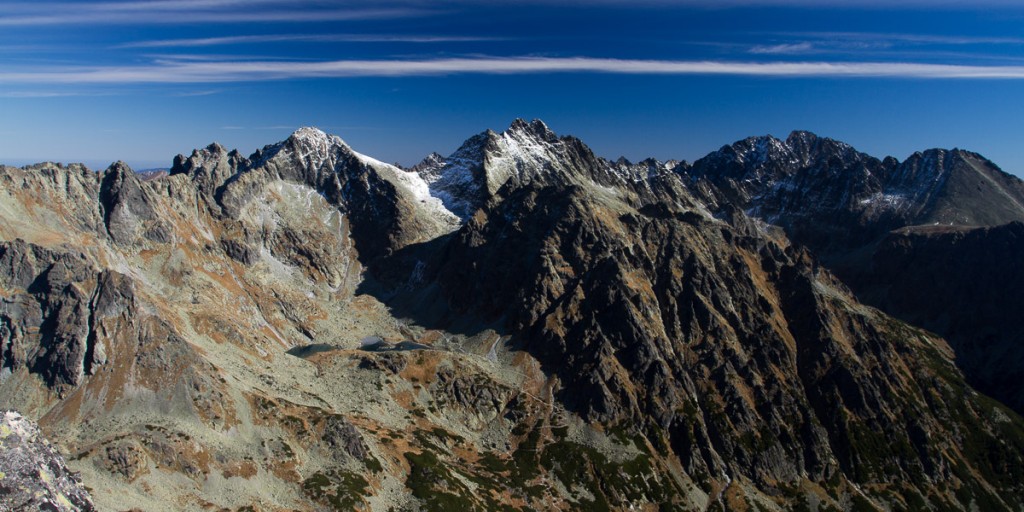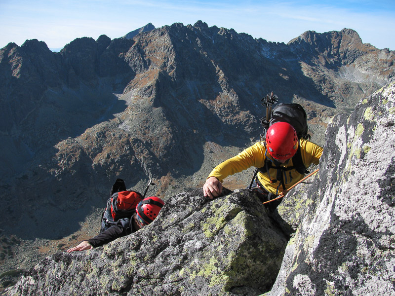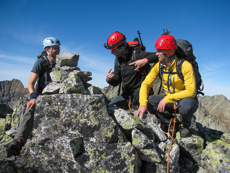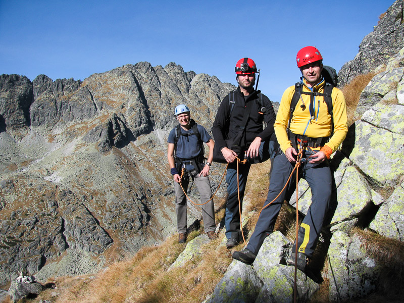 Po krátkej pauze na hlavnom a vedľajšom vrchole, so satanským zápisom 666 do vrcholovej knihy, sa náš ďalší postup nasmeroval hrebeňom Bášt smerom k Patrii. Hrebeňová túra plná výhľadov do tatranských dolín bola zážitkom pre všetkých. Kriváň, celý Slavkovský hrebeň, Furkotský a Štrbský štít, Čubrina, Mengusovský štít, Rysy, Ťažký štít, dvojvrchol Vysokej, Gerlach, Lomnický štít,... Viditeľnosť typická pre takéto jesenné počasie v Tatrách.