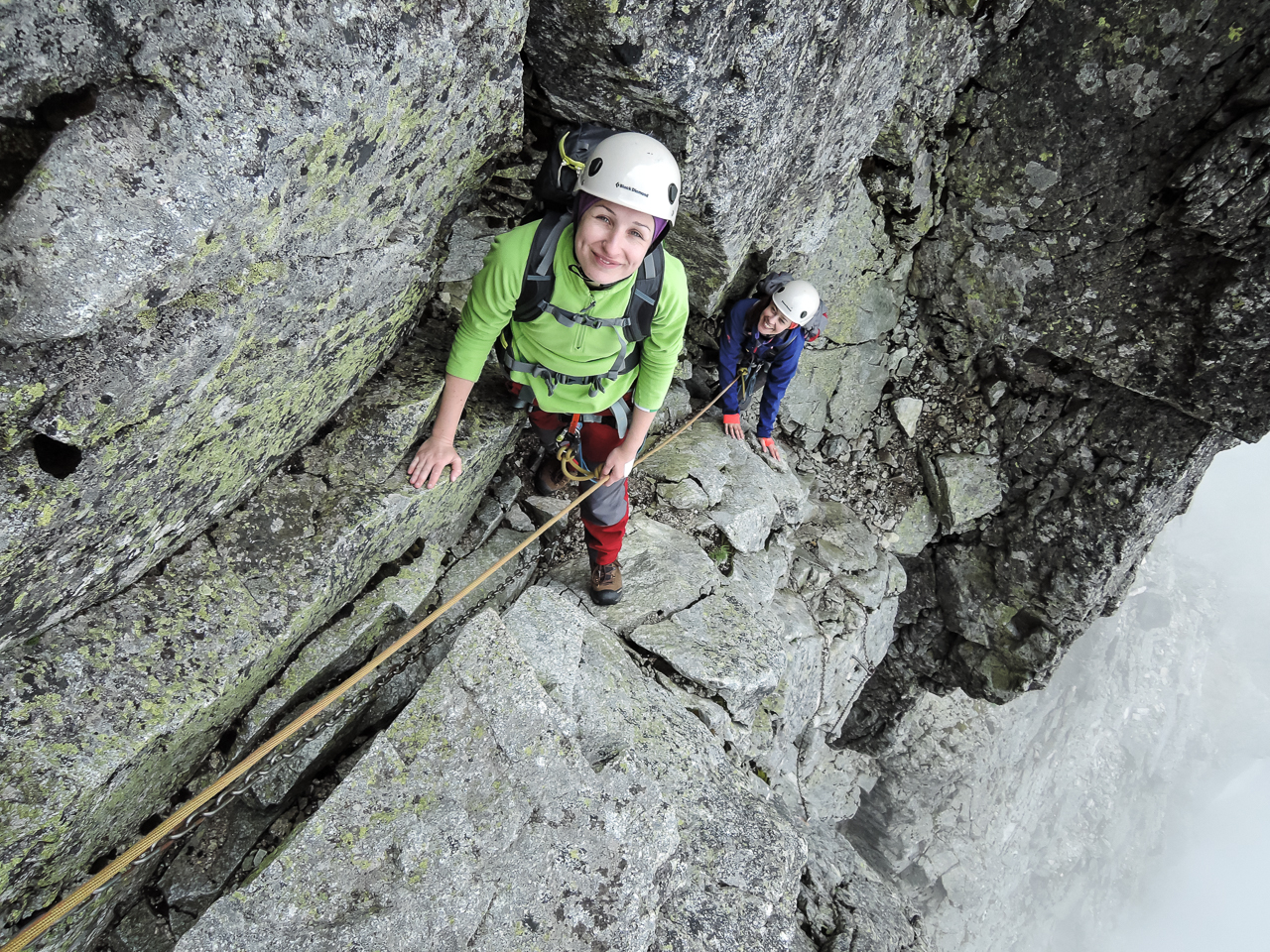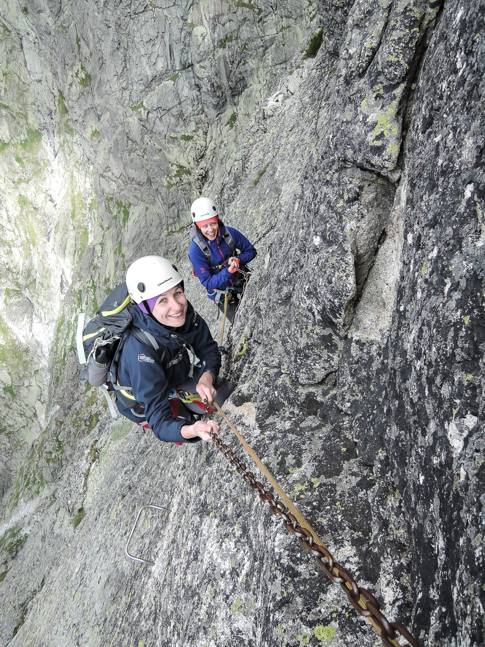 Už pri naväzovaní sa na lano a pohľade na uzol "nekonečno" bolo jasné že toto nebude obyčajný deň, obyčajná túra ktorých zažije vodca neúrekom. Exponovaný nástup do strmej "feraty", kde väčšina ľudí prehltne slinu rešpektu, baby, naopak, ešte viac povzbudil. Technické úseky zostupu zvládli na jedničku. "To lano je mojím nepriateľom", povedala Kika pri prehadzovaní si lana zo strany na stranu v kľukatom teréne zostupu do Téryho kuloáru. Keď sme už stúpali popod legendárnu západnu stenu Lomnického štítu, kde sa písala história tatranského lezenia, boli z nich kamoši.